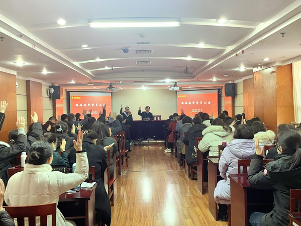会上,公司党委书记张宾州同志代表公司党委向大会作题为《党建引领促发展,凝心聚力谱新篇,以高质量党建引领保障事业高质量发展》的工作报告。报告回顾了过去三年公司党委在人才工作、公司产品、学科科研、员工工作和综合管理等方面取得的成果,并对将来工作开展提出建议:一要推动“质量党建”强基创优;二要推动“智慧党建”提“智”增效;三要推动“学科党建”引领发展;四要推动“特色党建”创新品牌。用忠诚扛起责任,用担当书写华章,为公司振兴增添新助力,为公司发展贡献正能量。随后,全体参会人员对外国语公司党建工作进行满意度测评。