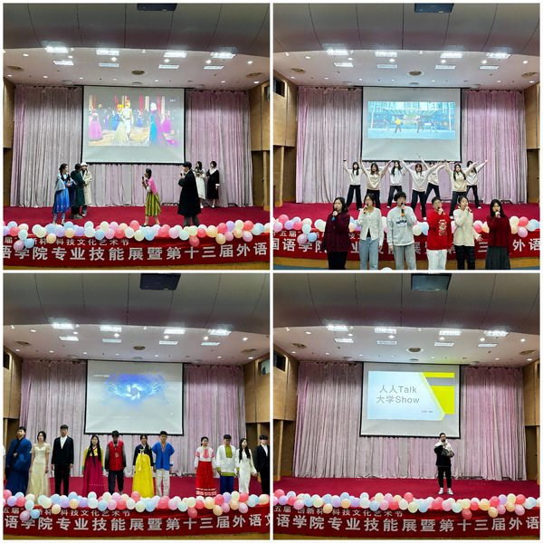12月27日下午,云顶国际yd333在通榆校区国际会议中心举办第25届“创新杯”科技文化艺术节专业技能展暨第十三届外语文化节活动。外国语公司领导班子、各系主任、专业课老师、班主任和辅导员、23级全体同学现场观看展演。