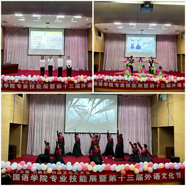 专业技能展以公司各专业特色为依托,多语种荟萃,亮点频出。开场节目《花木兰》英姿飒爽,利落整齐的舞蹈让观众感受到外院学子“巾帼不让须眉”的气概;话剧《诗译人生》娓娓道来,将观众带进翻译泰斗许渊冲先生绝美的浪漫翻译文学世界;朝鲜族民间舞蹈《象帽扇子舞》典雅含蓄,动作优美;《琴韵书法》聚焦传统,将粉笔字书法搬上舞台,展现公司学子扎实的教学基本功;活动最后在大合唱《相亲相爱》中落下帷幕,观众掌声久久不息。