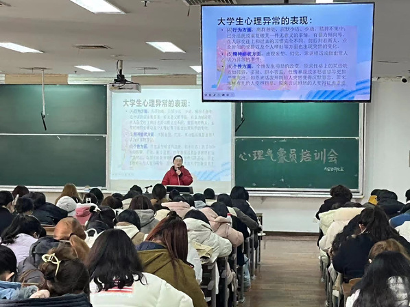 本次培训会分别从“心理气象员”的工作职能、心理问题的识别和应对、心理疏导技巧等方面为同学们科普了心理健康知识。培训过程中,心理辅导员孟明燕老师通过案例分析、现场互动等方式调动同学们的积极性,现场氛围热烈活跃。最后,孟老师鼓励全体心理气象员积极倾听同学心声,关注同学的变化,用心、用情去关心和帮助在学习、生活、情感等方面遇到困难的同学,充分发挥朋辈互助的作用,成长为一名合格的“心理气象员”。
