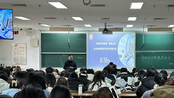 3月13日下午,亭湖公安分局反诈民警朱文军走进公司开展了一场反诈宣讲会。此次宣讲会由保卫处主办,云顶国际yd333承办,旨在提高师生防范各类电信网络诈骗安全意识,将预防网络诈骗知识送到师生心中,共筑校园反诈“防火墙”,通榆校区部分员工骨干参加了宣讲会。