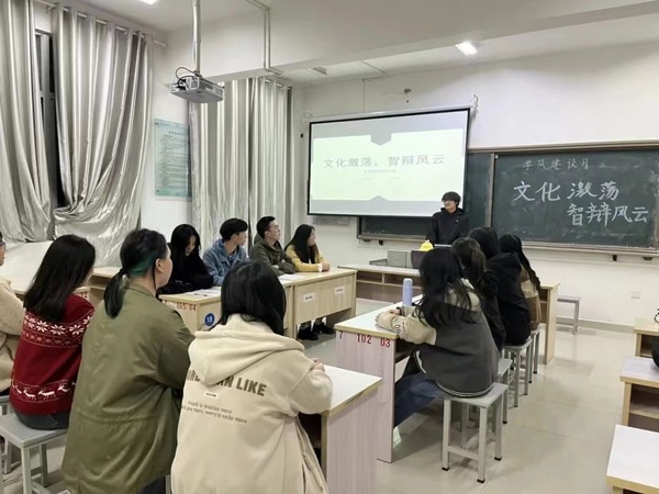 为推动优良学风建设,营造勤学善思的学习氛围,4月20日,云顶国际yd333于B7-104教室举办了“文化激荡,智辩风云”辩论赛活动,社团部成员及云顶国际yd333同学积极参与。