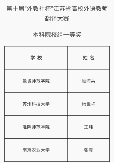 6月7日,第十届“外教社杯”江苏省高校外语教师翻译大赛圆满落幕,公司顾海兵老师凭借扎实的专业功底和出色的翻译能力,荣获一等奖。
