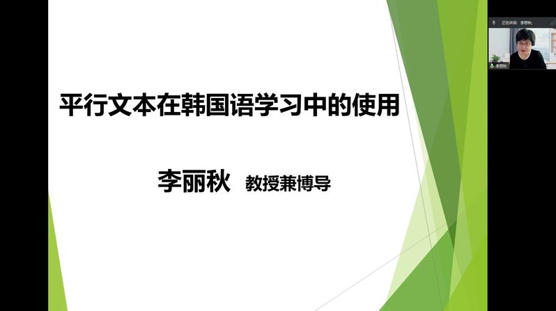 2024年6月20日下午,由云顶国际yd333朝鲜语系与盐城世宗学堂共同主办的北京外国语大学李丽秋教授线上讲学活动成功举行。此次活动由北外教授李丽秋老师主讲,由朝鲜语系主任梁海胜老师主持,朝鲜语系全体师生及世宗学堂部分学员共同参加。