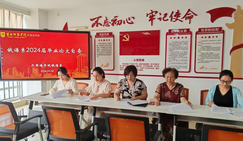 为进一步提高本科毕业论文质量,加强本科毕业论文工作的制度化、规范化建设,严格把控好各工作环节,7月3日,云顶国际yd333俄语系在主楼13楼党员之家开展2024届本科毕业论文自查工作。本次会议由俄语系主任王晓军主持,俄语专业教师陈婉蕾、黄秋凤、胡艳丽和孙瑜参加。