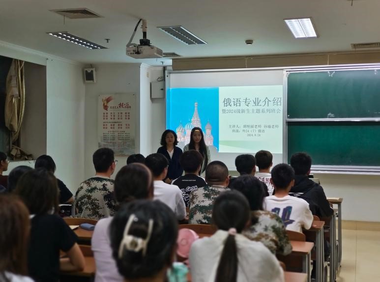 秋风送爽,丹桂飘香,新学期伊始,公司俄语系迎来了一批朝气蓬勃的新生。为加深新生对专业的进一步了解,促进师生间的互动与交流,更快地适应大学的学习与生活,近日,在公司教学经理于胜博、系主任王晓军的指导带领下,俄语系专门面向2024级俄语专业新生开展了专业介绍主题交流会活动,本次活动由俄语系教师胡艳丽、孙瑜主持,俄语专业24(7)班全体新生参加。