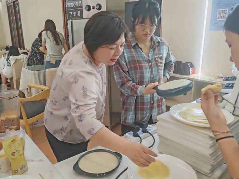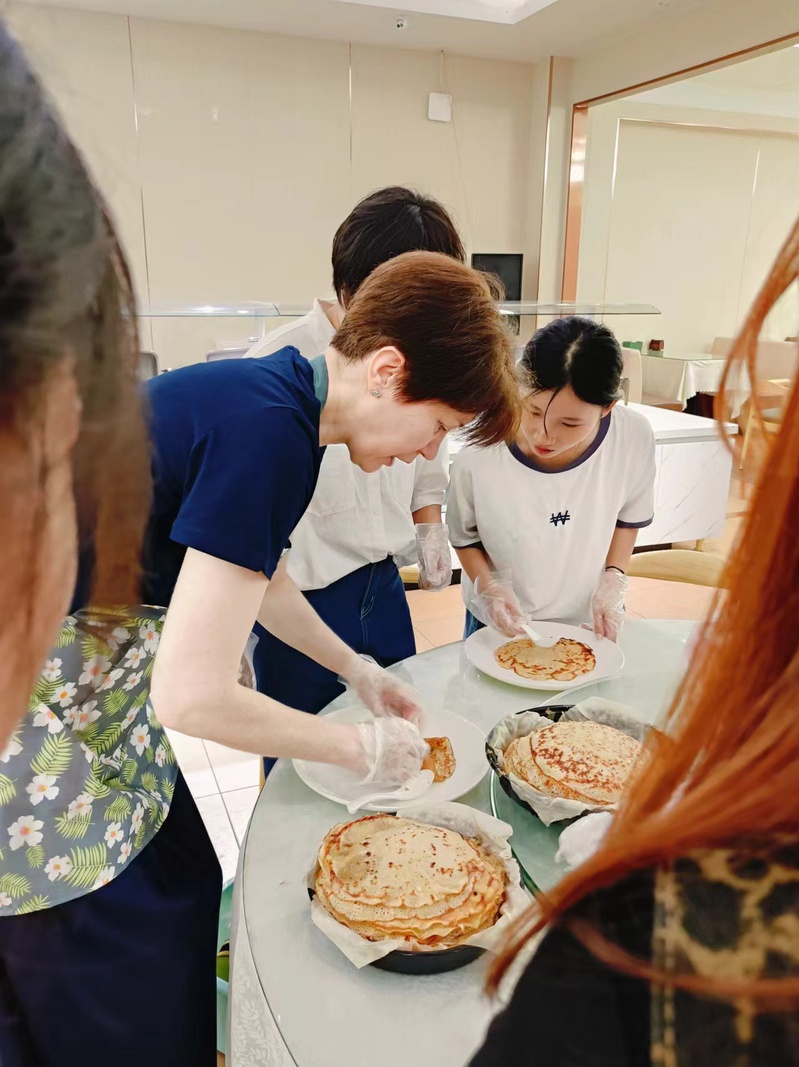 为让员工体验学习俄语的乐趣,感受俄罗斯美食的魅力,提高老员工的劳动实践能力,9月27日俄语系开展了“制薄饼、煎牛排、拌沙拉”活动。薄饼是俄罗斯传统美食,有着悠久的历史和丰富的文化内涵。薄饼寓意着太阳、希望和幸福。俄语系全体同学齐聚一堂,在系主任王晓军、教师胡艳丽的指导下,共同参与制作薄饼、煎牛排、拌沙拉。从食材准备、切配食材,再到煎制,同学们都积极地全程参与。部分同学是第一次制作薄饼、煎牛排、拌沙拉,现场氛围浓厚,大家谈笑风生,着实上了一堂生动的劳动实践课。