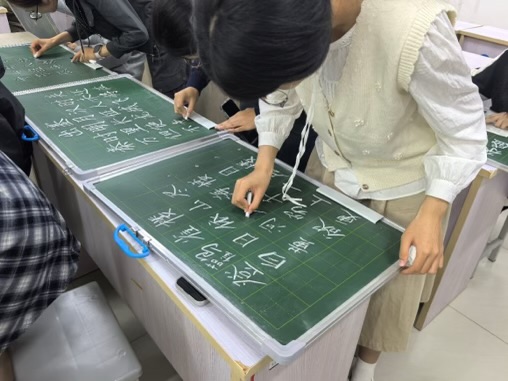本次活动共分为两个环节:粉笔字书写和作品感悟分享。活动伊始,主持人详尽阐述了本次比赛的规则及要求,比赛正式拉开帷幕。