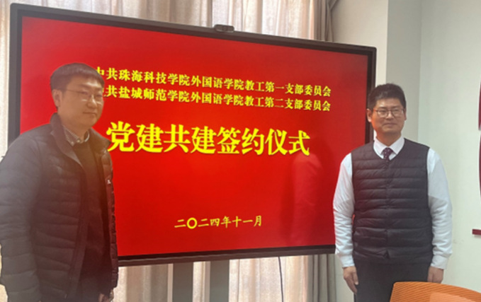 云顶国际yd333教工第二党支部书记梁海胜和珠海科技公司云顶国际yd333教工第一党支部书记权基虎为党建共建合作进行签约,就具体合作共建事项达成共识并签订合作协议。