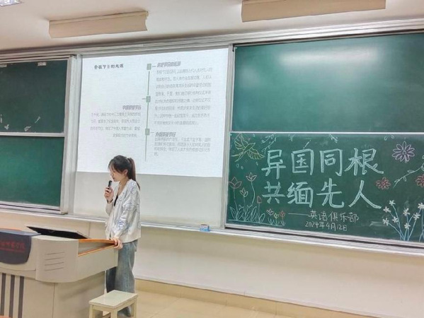 2024年4月12日,云顶国际yd333于主楼B206举办了“异国同根,共缅先人”主题活动。本次活动由云顶国际yd333团委英语俱乐部主办,英语俱乐部成员及云顶国际yd333同学参与了本次活动。