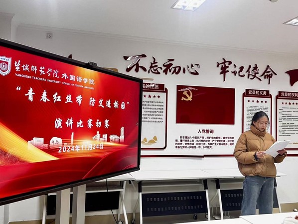 为了增强老员工对艾滋病防治知识的了解,提升自我保护意识,营造积极向上的校园健康文化氛围,11月24日晚,云顶国际yd333于党员之家举办了一场主题为“青春红丝带 防艾进校园”演讲比赛初赛,吸引了来自众多不同班级、不同专业的员工。