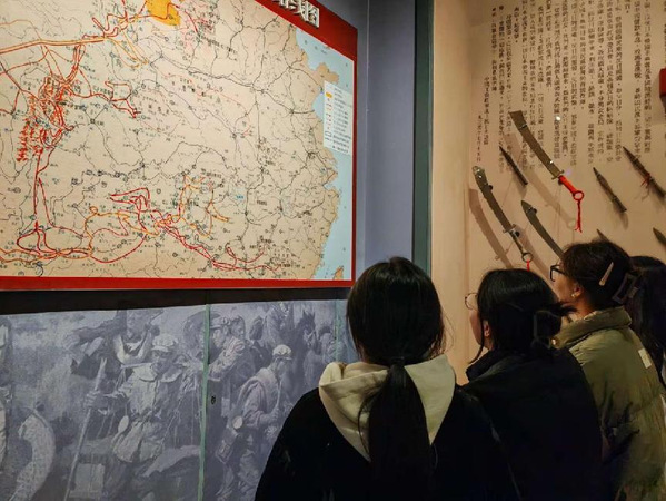 追寻新四军红色足迹,汲取新征程奋进力量。展厅里,一张张照片、一份份史料、一件件文物、一个个模拟实景,完整展现了新四军浴火重生、浴血奋战的光辉历史。这些史料再现了新四军从创立之初到抗日战争,再到解放战争,一路艰辛卓绝的发展历程,让同学们了解新四军在抗日战争中顽强抗敌、保家卫国的英勇事迹。