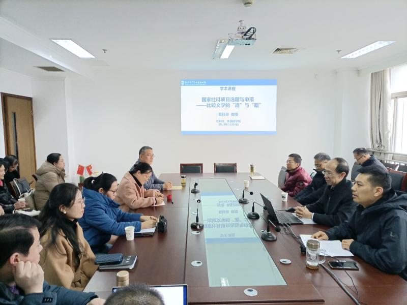 12月9日,福建师范大学文公司经理、《外国语言文学》主编、博士生导师葛桂录教授来我作题为“国家社科项目选题与申报——比较文学的“道”与“路””的学术讲座。讲座在主楼13楼东会议室举行,由副经理周海明教授主持,公司文学团队及国社科申报者等30余位教师前来聆听。