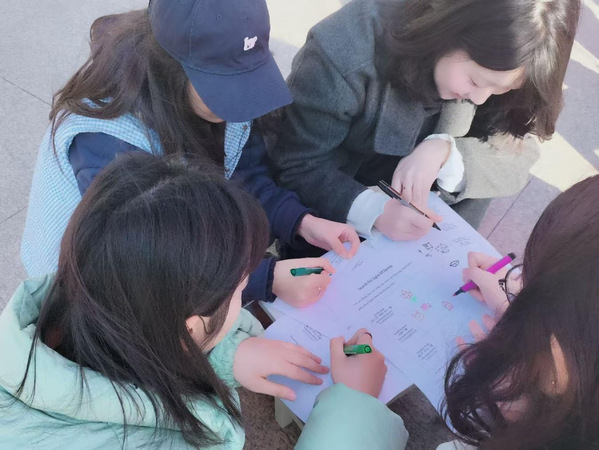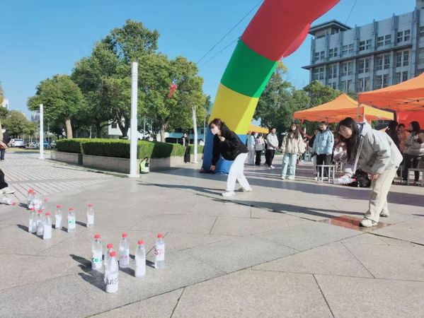 “春日拾萃”环节吸引了众多同学的热情参与。同学们手中拿着特制的表格,漫步在校园的每一个角落,用心感知着春天的气息。表格里的英文要求,就像是一个个神秘的指令,引导大家去寻找那些藏在角落里的美好。“掷忧寻真”活动现场则气氛热烈如战场,同学们的目光如鹰隼般锐利,紧紧锁定那些贴满负能量词汇的“情绪小怪兽”。大家手中的撞击瓶如离弦之箭,气势凌厉。随着“砰”的声声脆响,瓶子应声倒地,人群中爆发出阵阵欢呼。