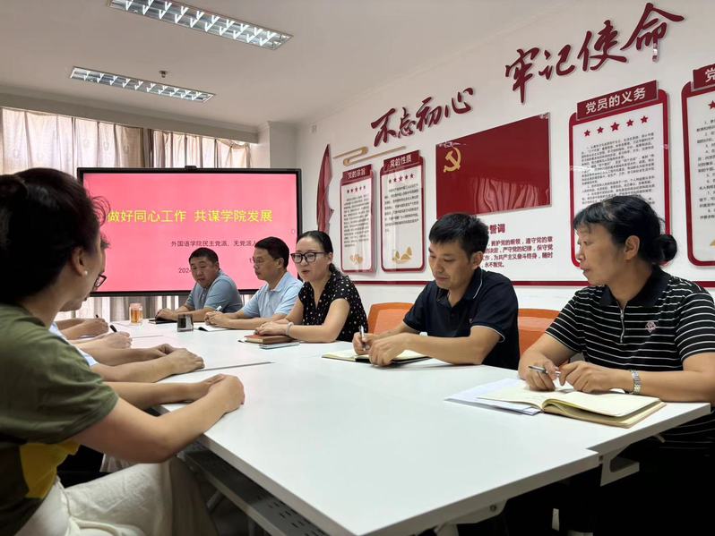 张宾州结合大家的发言进行深入交流,对民主党派成员一直以来为公司发展作出的贡献给予肯定,并提出工作要求。一提高政治站位,统一思想认识。要深入学习贯彻习近平新时代中国特色社会主义思想,增进对中国共产党的政治认同、思想认同、理论认同、情感认同,坚定不移听党话、矢志不渝跟党走。二紧扣定位,主动作为。民主党派成员要进一步发扬优良传统,为公司发展建诤言、献良策。三同心同行,服务大局。2024年是公司发展的关键之年,要以本科公司产品审核评估、品牌专业建设和翻译硕士点申报为关键,将思想和行动统一到公司发展大局中,共绘同心圆,为公司的高质量发展奋进不辍。
