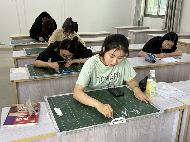 决赛于5月7日下午在7号楼104教室开展,副经理周海明亲临现场观摩指导,英语教育系主任杨丹、刘岩、以及指导教师代表李箭、张湛、朱洪祥、崔海燕等担任评委。决赛分为粉笔字书写、钢笔字书写、汉语口语表达和英文模拟授课四个环节,全面考察选手的语言能力、教学技能、课堂应变及师德素养。经过激烈角逐,最终决出特等奖2名、一等奖8名。