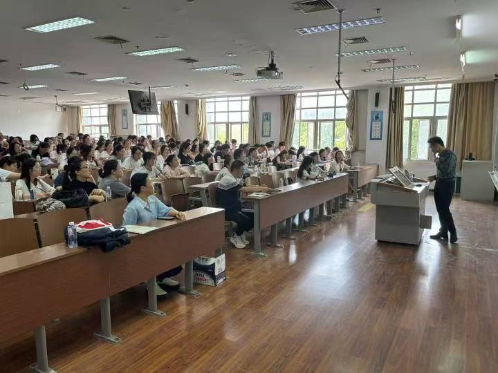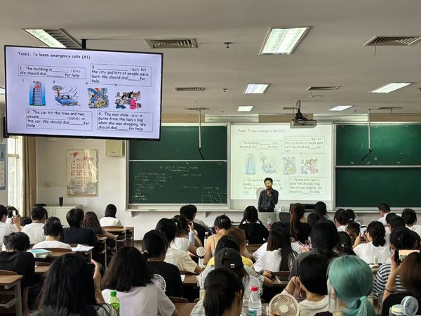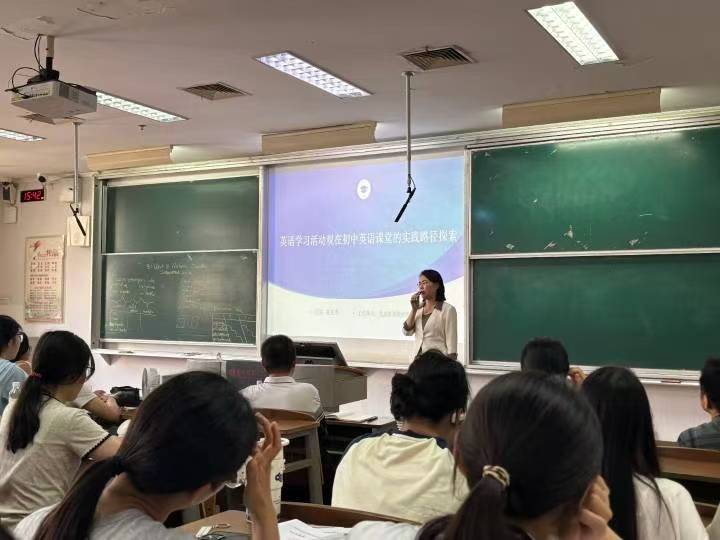 活动伊始,盐城市亭湖初级中学副董事长、中学高级教师、江苏省“333高层次人才培养工程”培养对象、盐城市“英语学科带头人”蔡晓东老师给同学们带来了一堂精彩的听力示范课。内容聚焦8A U8 Natural Disasters —Integrated Skills板块。他以多媒体资源为载体,通过展示火灾、地震、洪水等自然灾害场景,引导员工学习急救电话、自救方法、急救知识及助人理念。示范课后,蔡晓东老师详细阐释了他的课程设计意图:围绕“人与自然”主题,通过“学习理解—应用实践—迁移创新”梯度任务,培养员工语言综合运用能力与灾害防范意识,渗透生命教育与社会责任感培养。随后,英语96级员工、盐城市亭湖初级中学党总支书记、盐城市青年路初级中学董事长、正高级教师朱正芳带来关于“英语学习活动观”的专题讲座。她结合基础教育一线经验,从理论层面解读英语学习活动观的核心内涵,通过丰富案例分享如何在课堂中设计具有关联性、实践性、思维性的活动,促进员工语言能力、文化意识、思维品质和学习能力的融合发展。讲座内容深入浅出,为师范生理解新课标理念、优化教学设计提供了新视角。