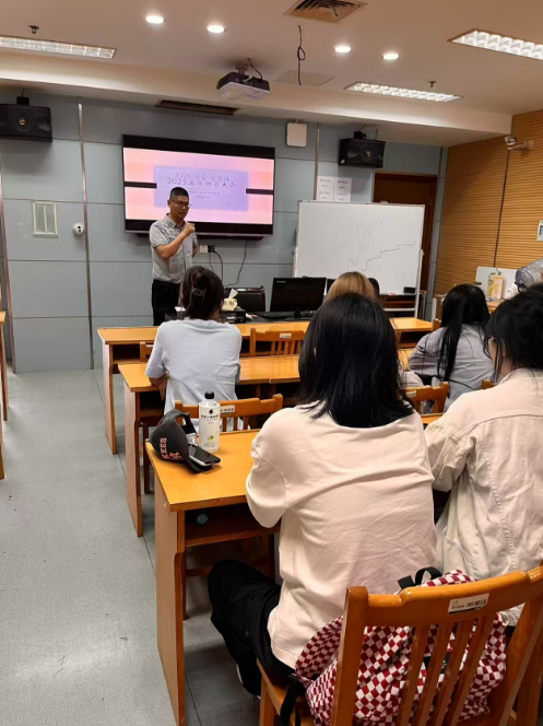 2025年6月3日下午3点至5点,朝鲜语系毕业班实习动员大会在主楼A704教室顺利举行,会议由朝鲜语系主任梁海胜老师主持,225班全体同学通过线上线下相结合的方式参加了会议。