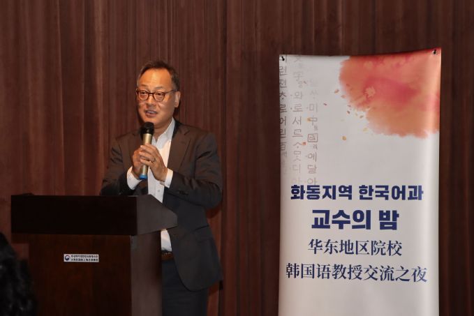 活动伊始,大韩民国驻上海总领馆金英俊总领事进行了致辞,致辞中对与会者表示了诚挚的欢迎,对华东地区各高校朝鲜语专业的发展表示了持续予以支持的关切,而且充分肯定了中韩关系的重要性,表达了推动双边关系进一步向前发展的积极愿望。