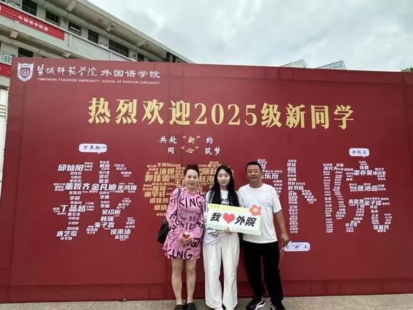 公司延续暖心传统,为每一位新生准备了专属的定制姓名可乐以及青春体验卡,新生们可以凭卡免费体验盐城景点。而最引人注目的当属迎新广场的新生姓名墙——全体公司新生的照片精心排列,组成了“我爱公司”的醒目大字,不少新生驻足拍照,志愿者们也主动上前,用相机为新生与家长记录下入学第一天的温馨瞬间,让归属感在快门声中悄然升起。