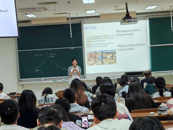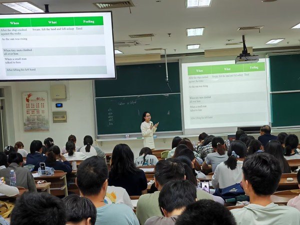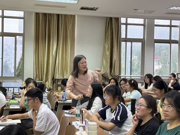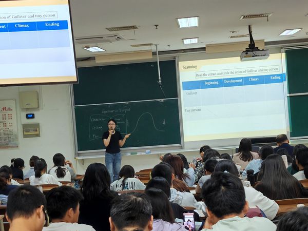 随后,夏董事长以“依标施教:初中英语Reading课的设计与探究”为主题开展专题讲座。她紧密围绕英语教学实际与新课标要求,阐释了英语师范生依标施教开展特定板块教学设计的重要意义,重点从精准定位、锚定方向和落地实践三个维度进行系统讲解,为师范生强化专业素养、提高教学水平提供了切实有效的指导。在讲座过程中,同学们与夏泳老师进行了深入交流,围绕教学设计方法开展了充分研讨,现场互动积极,知识传授效果良好。