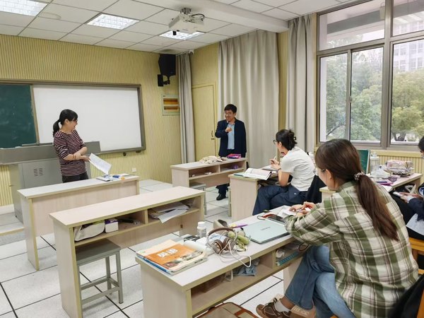 9月26日下午,盐城市初中英语教学能手董爱红老师应邀为英语师范生教学基本功大赛的选手进行赛前授课指导。活动中,董老师首先认真听取了各位选手的模拟授课,并在听取同学们互评的基础上,重点围绕教学设计思路、板书呈现、PPT制作等方面对选手进行了细致深入的现场指导。她对6位选手的模拟授课提出中肯而富有建议性的建议,赢得了选手一致好评。本次活动还得到了教务处副处长姜超的肯定。